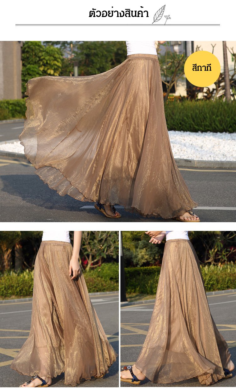 กระโปรงยาวพลีทชีฟอง ใส่ได้ 3 แบบ