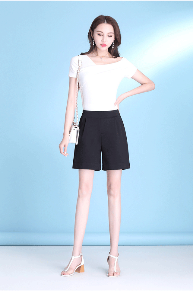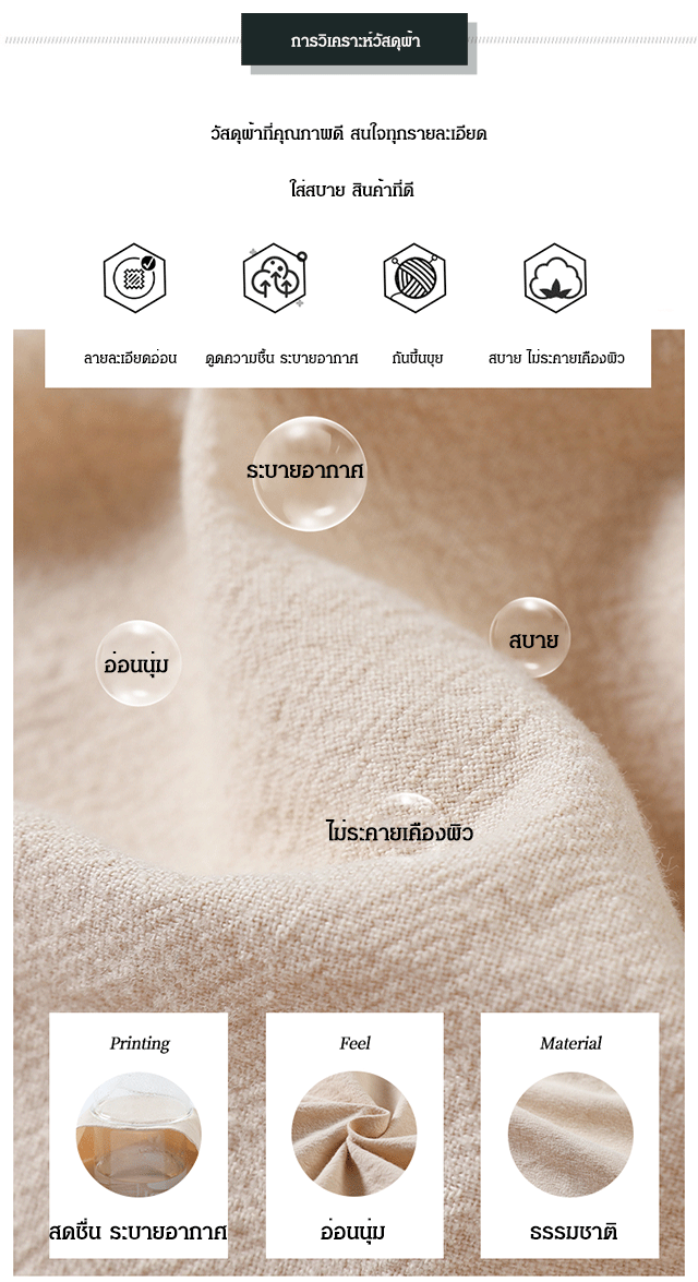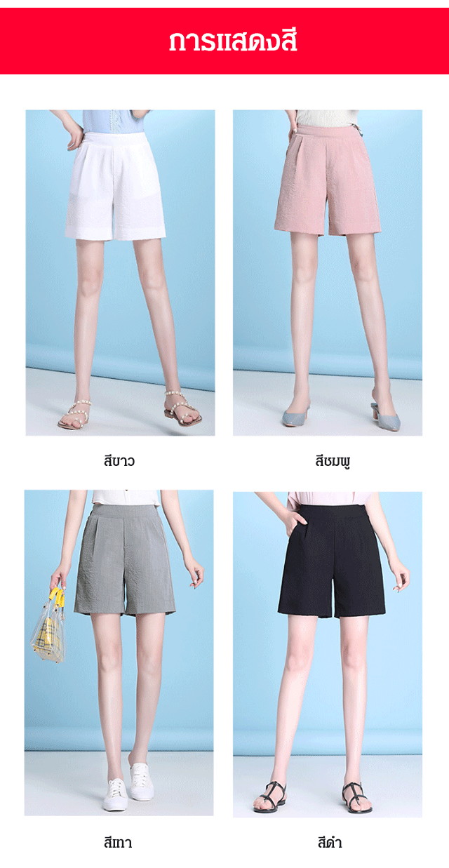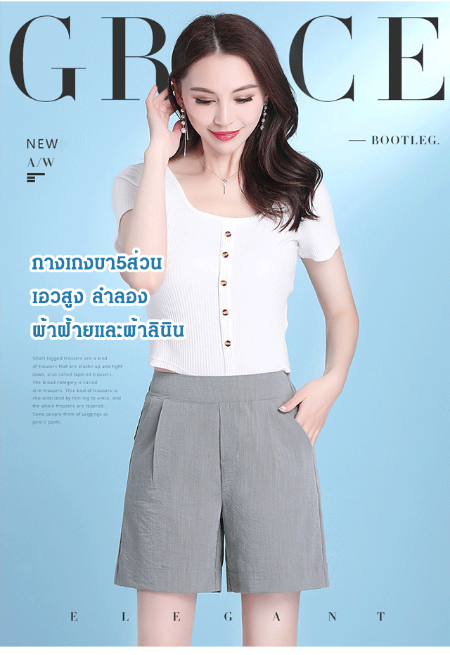 กางเกงขา5ส่วน เอวสูง ลำลอง ผ้าฝ้ายและผ้าลินิน